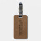 Das moderne Gepäckanhänger-Design mit gebürstetem Metallgold-Monogramm auf einem gestressten, braunen Lederhintergrund, mit Monogramm-Initial und Namen in klassischer Blocktypografie für ein berufliches, schlichtes Design.