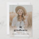 Eine elegante Abschluss-Einladung mit einem großen senkrechten Foto mit Graduierungshülse und minimalem bearbeitbarem Text vorne. Die Rückseite hat ein horizontales Foto und einen Ort, um die Graduate und Party Details anzukündigen.