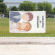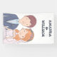 Dieses vertikale Hochzeitsbanner zeigt eine bezaubernde Abbildung einer Braut und eines Bräutigams. Der Bräutigam ist mit kurzem braunem Haar, einem hellen Teint dargestellt und trägt eine marineblaue Anzug-Jacke über einem hellblauen Shirt und einer weißen Krawatte. Er hat einen kleinen Boutonniere, der auf seinen Laptop fixiert ist. Die Braut ist neben ihm stehend und lächelt süß. Sie hat schwere, rötlich-orangefarbene Haare mit einer Blume aus rosa, orangefarbenen und weißen Blüten. Hinter ihr fließt ein zarter weißer Schleier. Sie trägt ein weißes Hochzeitskleid mit einem süßen Halsband und einer Perlenhalskette. Diese einfache, Cartoon-ähnliche Abbildung weist auf eine String-liebende Verbindung zwischen ihnen hin. Es ist skurril und liebenswert und setzt einen fröhlichen Ton für die kommende Hochzeit. Der Bannertext wird so minimalistisch wie möglich behalten, zeigt nur den Ehepartner-Namen in einem rustikalen Schriftart, für ein insgesamt einfaches Gefühl, in dem Liebe das einzige wichtige Element ist !