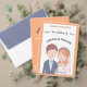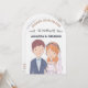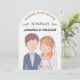 Die Einladung zur Hochzeit zeigt eine bezaubernde Abbildung einer Braut und eines Bräutigams. Der Bräutigam ist mit kurzem braunem Haar, einem hellen Teint dargestellt und trägt eine marineblaue Anzug-Jacke über einem hellblauen Shirt und einer weißen Krawatte. Er hat einen kleinen Boutonniere, der auf seinen Laptop fixiert ist. Die Braut ist neben ihm stehend und lächelt süß. Sie hat schwere, rötlich-orangefarbene Haare mit einer Blume aus rosa, orangefarbenen und weißen Blüten. Hinter ihr fließt ein zarter weißer Schleier. Sie trägt ein weißes Hochzeitskleid mit einem süßen Halsband und einer Perlenhalskette. Diese einfache, Cartoon-ähnliche Abbildung weist auf eine String-liebende Verbindung zwischen ihnen hin. Es ist skurril und liebenswert und setzt einen fröhlichen Ton für die kommende Hochzeit. Der Einladungstext wird so minimalistisch wie möglich behalten für ein einfaches Gefühl, bei dem Liebe das einzige wichtige Element ist! Alle Felder sind vollständig anpassbar. Sie können die Felder, die Sie nicht gewollt haben, ausfüllen (z.B. die uAwg, wenn Sie eine separate Karte bevorzugen)