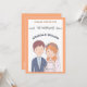 Die Einladung zur Hochzeit zeigt eine bezaubernde Abbildung einer Braut und eines Bräutigams. Der Bräutigam ist mit kurzem braunem Haar, einem hellen Teint dargestellt und trägt eine marineblaue Anzug-Jacke über einem hellblauen Shirt und einer weißen Krawatte. Er hat einen kleinen Boutonniere, der auf seinen Laptop fixiert ist. Die Braut ist neben ihm stehend und lächelt süß. Sie hat schwere, rötlich-orangefarbene Haare mit einer Blume aus rosa, orangefarbenen und weißen Blüten. Hinter ihr fließt ein zarter weißer Schleier. Sie trägt ein weißes Hochzeitskleid mit einem süßen Halsband und einer Perlenhalskette. Diese einfache, Cartoon-ähnliche Abbildung weist auf eine String-liebende Verbindung zwischen ihnen hin. Es ist skurril und liebenswert und setzt einen fröhlichen Ton für die kommende Hochzeit. Der Einladungstext wird so minimalistisch wie möglich behalten für ein einfaches Gefühl, bei dem Liebe das einzige wichtige Element ist! Alle Felder sind vollständig anpassbar. Sie können die Felder, die Sie nicht gewollt haben (z.B. die uAwg, wenn Sie eine separate Karte bevorzugen), leeren. Orange Hintergrund.
