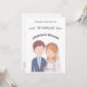 Die Einladung zur Hochzeit zeigt eine bezaubernde Abbildung einer Braut und eines Bräutigams. Der Bräutigam ist mit kurzem braunem Haar, einem hellen Teint dargestellt und trägt eine marineblaue Anzug-Jacke über einem hellblauen Shirt und einer weißen Krawatte. Er hat einen kleinen Boutonniere, der auf seinen Laptop fixiert ist. Die Braut ist neben ihm stehend und lächelt süß. Sie hat schwere, rötlich-orangefarbene Haare mit einer Blume aus rosa, orangefarbenen und weißen Blüten. Hinter ihr fließt ein zarter weißer Schleier. Sie trägt ein weißes Hochzeitskleid mit einem süßen Halsband und einer Perlenhalskette. Diese einfache, Cartoon-ähnliche Abbildung weist auf eine String-liebende Verbindung zwischen ihnen hin. Es ist skurril und liebenswert und setzt einen fröhlichen Ton für die kommende Hochzeit. Der Einladungstext wird so minimalistisch wie möglich behalten für ein einfaches Gefühl, bei dem Liebe das einzige wichtige Element ist! Alle Felder sind vollständig anpassbar. Sie können die Felder, die Sie nicht gewollt haben (z.B. die uAwg, wenn Sie eine separate Karte bevorzugen), leeren. Weichter Hintergrund.