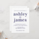 Einfache und schicke Hochzeitseinladung mit marineblau stilvoller, eleganter und moderner Typografie auf weißem Hintergrund. Fügen Sie einfach Ihre Hochzeitsdetails hinzu. Exklusiv für Sie entworfen von Happy Dolphin Studio. Wenn Sie Hilfe oder passende Produkte benötigen, kontaktieren Sie uns bitte unter happydolphinstudio@outlook.com. Wir helfen Ihnen gerne, Ihre Hochzeit zum schönsten Tag zu machen!
