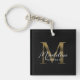 Einfache Chic Script Metallic Black Gold Monogram Schlüsselanhänger
