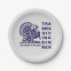 Einfache Erntedank Dinner Papier Teller, entworfen mit einer Putengrafik und kühnen ERNTEDANK Typografie in Marineblau vor einem leichten silbergrauen Hintergrund. Der CUSTOMIZABLE-TEXT liest DANK AN DEN LORD, wo Sie Ihren Namen hinzufügen oder Ihre eigene Formulierung erstellen können. Wählen Sie aus einer großen Auswahl an Erntedank-Einladungen, Grußkarten und Geschenken, die von Berean Designs entworfen wurden. Entsprechende Einladungs- und Party-Vorräte für Erntedank.