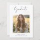 Feiern Sie Ihren Absolventen mit dieser einfachen boho 2-Foto Einladung. Diese preisgünstige Digitalkarte mit ihrem klassischen Schwarz-Weiß-Design eignet sich ideal für Abschlüsse in der High School, Uni oder Pflege. Es ist modern, sauber und preisgünstig für jede Graduiertenparty.