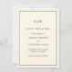 Einfache Elfenbein/Creme-Save the Date-Karte mit modernem und elegantem Design, oben mit zwei Buchstaben-Monogramm und Ihren Hochzeitsdetails, umgeben von einer dünnen Grenze. Die Schriftart und Hintergrundfarben können beliebig verändert werden. Ein elegantes und stilvolles Design, das sich ideal für ein minimalistisches Paar eignet.