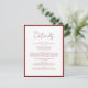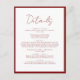 Einfache Crimson Red Border Skript Hochzeitsdetails Einschlusskarte