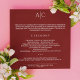 Einfache Crimson Red Monogram Hochzeitfeier Programm