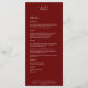 Einfache Crimson Red Monogram Hochzeitsempfehlung Menükarte