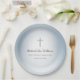 Einfach Cross Boy's Erste Kommunion Papier Platte mit einem staubblauen Design. Mit anpassbarer grauer Schrift fügen Sie Ihren eigenen Text hinzu. Eine schöne Ergänzung zum spirituellen Meilenstein Ihres ganz speziellen Kindes.