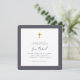 Einfache und klassische Taufeinladung mit einem einfachen, goldfarbenen Kreuz und einem modernen Handschrift mit abgerundeter Ecke in Mitternachtsblau. Auf der Rückseite dieser stilvollen Taufeinladung befindet sich ein QR-Code mit UAwg für Gäste. Diese schöne Einladung ist auch perfekt für eine erwachsene Taufe. Diese traditionelle religiöse Einladung eignet sich perfekt für ein katholisches Sakrament der Taufe, Christliche Taufe oder Weihnachten.