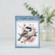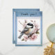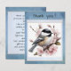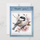Eine zarte Dankeskarte mit einer charmanten Meise, umgeben von zarten rosa Blüten. Die sanfte Szene strahlt Wärme, Ruhe und herzliche Dankbarkeit aus. Perfekt, um Dankbarkeit mit Anmut auszudrücken. Dieses Design trägt die stille Schönheit der Natur und die zarte Freude, von Herzen 'Danke' zu sagen.