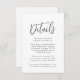 Moderne Hochzeitskarten mit Ihren Hochzeitsdetails in schwarzer Schrift mit weißem Hintergrund. Fügen Sie Details hinzu, wie z.B. Hotelunterkünfte, Informationen über den Empfang, Hochzeitswebsite, etc. Entworfen, um mit unserer Simple Script Hochzeitskollektion zu koordinieren.