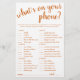 Einfache Dusche/Party-Spielpunktekarte mit einem lässigen, handgeschriebenen Drehbuch zum Thema "Was ist auf deinem Handy". Das klassische Design beinhaltet ein modernes, handhabbares Offerttipografie-Overlay. Für andere Farben oder passende Produkte, besuchen Sie bitte den JustFharryn Zazzle Store, oder kontaktieren Sie den Designer, c/o Fharryn@yahoo.com Alle Rechte vorbehalten. #bohochic #zazzlemade
