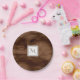 Einfache Teller aus dunkelbraunem Marmor mit einem modernen, weißen quadratischen Abzeichen, das Sie mit Ihrem mit Monogramm Einstieg personalisieren können. Dies ist Teil der Emperador Subtle Marble Monogram Collection.