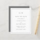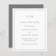 Einfaches Budget Save the Date mit modernem und dennoch elegantem Design mit Ihrem zweistelligen Monogramm oben und Ihren Hochzeitsdetails, umgeben von einer dünnen Grenze. Alle Designelemente sind grau und können im Entwurfsbearbeitungstool geändert werden. Ein elegantes und stilvolles Design, das sich ideal für ein minimalistisches Paar eignet.