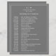 Einfache Wedding Timeline mit einem modernen, aber eleganten Design mit Ihren zwei Buchstaben Monogramm an der Spitze und Ihre Details umgeben von einem dünnen Rand. Der gesamte Text ist weiß über einen mittelgrauen Hintergrund und kann durch Anklicken des Buttons "Anpassen" in beliebige Farben geändert werden. Ein elegantes und stilvolles Design, das sich ideal für ein minimalistisches Paar eignet.