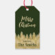 Elegante Geschenkmarke mit dunkelgrünem Hintergrund und Imitaten goldgelben Pinienwald Silhouette. Alle Texte, einschließlich Weihnachts-, Jahres- und Familienname, sind anpassbar.