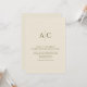 Einfach elegante, moderne minimalistische Hochzeitseinladung mit einem überdimensionalen Monogramm. Das Design wird von einer Fremdverzierung abgeschnitten und priorisiert dabei Funktionalität, Ausgewogenheit und Harmonie. Ideal für Paare, die ein Höchstmaß an Einfachheit und Stil genießen. Textdetails in gemischter minimalistischer Typografie. ❀ ❀ ❀ Bitte wenden Sie sich an uns, um Ihre individuellen Wünsche zu erfüllen. Oder, um Hilfe bei der Erstellung von verwandten Produkten oder benutzerdefinierten Farbvarianten, um Ihre perfekte Hochzeitsstiftung zu erstellen.
