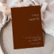Diese einfache Wüste | Dark Cinnamon Einladung ist genau das, was Sie suchen, um Ihre moderne rustikale Hochzeit zu vollenden. Ideal für einen Vintag minimalistischen Western oder einen Retro-Fall-Böhmen-Gefühl. Die minimale natürliche weiße Schrift Pop mit diesem farbenfrohen Herbsthintergrund. Sie können wählen, wie es behalten wird, oder es mit eigenen Kunstwerken oder Fotos personalisieren. Blättern Sie durch die Sammlung, um andere Elemente auszuwählen, die Ihre Hochzeit im Herbst authentisch singen lassen!