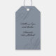 Dieses elegante Hochzeitsgunst-Tag ist eine schöne Wahl, um sich bei Ihrer Hochzeit, Verlobung, Jubiläum, Party oder Dusche auf Gefallen, Geschenken und Gaumenfreuden zu vergnügen. Es bietet eine einfache moderne minimalistische Design schöne kalligraphische Skript-Monogramme der Braut und Bräutigam an alternativen Ecken. Ein Dankeschön-Nachricht und die Namen von Braut und Bräutigam werden auf einem einfachen, staubigen blauen Hintergrund mit schwarzem Text zentriert. Ersetzen Sie den Beispieltext durch den gewünschten Text oder behielt Sie dieselbe einfache Nachricht. Stellen Sie sicher, dass Sie die Namen der Braut und des Bräutigams und die Monogramminitialen personalisieren. Sie können Ihre Initialen leicht verlassen oder rechts nach oben oder unten verschieben, um ihre beste Anzeige in diesem Entwurfsformat zu ermöglichen, indem Sie "Vorlage bearbeiten" im unteren Bereich der Textvorlage auswählen. Dadurch wird der gesamte Editor geöffnet und Sie können jede Ebene des Designs anzeigen, alles auswählen, was Sie gewollt haben, und es an die Stelle ziehen. Die Monogramme sehen am besten aus, wenn sie leicht von den Kanten ablaufen. Wenn Sie das Design in der Textvorlage personalisieren, können Sie den gesamten Editor öffnen, indem Sie am unteren Rand der Textvorlage "Bearbeiten mit dem Entwurfstool" auswählen. Dadurch können Sie die großen Monogramm-Initialen auswählen und an den Kanten ziehen.