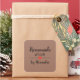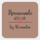 Einfache Aufkleber "hausgemacht mit Liebe" mit schwarzem Schriftart auf schimmerndem, braunem Hintergrund, geschmückt mit einem niedlichen roten Herz. Text anpassen.