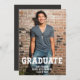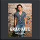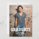 Einfache Ankündigung eines Fotos Abschluss mit Typografie-Overlay. Das Wort Graduate verwendet einen coolen Not leidenden Schriftart. Fügen Sie Ihr spezielles Foto, Name, Schule und Klasse von 2023 (oder bearbeiten). Sehen Sie die Koordination der Artikel in unserem Shop, Verzauberte Finch.