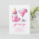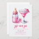 Wenn Sie einfach Stil Liebe, ist diese Einladung richtig für Sie. Die Einladung zeichnet sich durch ein elegantes Design mit einem weichen, weißen Hintergrund mit einer lustigen rosa Babyflasche und rosa Margarita aus. In der Mitte sind die Details des Party wunderschön in einem rosa Schriftart gestaltet, der eine raffinierte Atmosphäre ausstrahlt. Mit dieser wunderbaren Vorlage laden wir Sie ein, Ihre Feier stilvoll zu gestalten. Hintergrundfarbe und Text können bearbeitet werden.