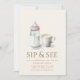 Dieses schlaue und sehende Party Einladung-Template zeichnet sich durch ein charmantes und gemütliches Design aus. Oben befindet sich eine niedliche Milchflasche mit rosa Kappe neben einer dampfenden Tasse Kaffee, die die Wärme und den Komfort der Ansammlung mit den Lieben symbolisiert, um das neue Kind kennenzulernen. Die sanfte Farbpalette und die spielerische Bildsprache schaffen eine einladende Atmosphäre, die perfekt zum Feiern dieses besonderen Anlasses geeignet ist. Unter der wunderschönen Abbildung ist genügend Platz für die Gäste vorhanden, um alle wesentlichen Details, einschließlich Datum, Uhrzeit und Veranstaltungsort, zu finden. Diese Einladung Set den Ton für ein entspanntes und fröhliches Zusammensein.