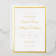 Diese einfache und elegante Goldfolie-Hochzeitseinladung hat zwei wunderschön elegante Schriftart zusammengeführt, die ihr ein modernes und doch traditionelles Aussehen verleihen. Die Grenze ist ein verkauftes Band aus Goldfolie. Bearbeiten Sie die Vorlage ganz einfach nach Ihren Wunschvorstellungen. Sehen Sie sich unsere Sammlung an, um passende Hochzeitssuite-Artikel zu erhalten. Einfache Einladung von Goldfolien-White Wedding Foil.