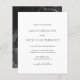 Klassische Schwarz-Weiß-Einladung zur Hochzeit mit einem einfachen, traditionellen Design mit einer modernen, minimalistischen Touch. Auf der Rückseite ist dein LieblingsFoto. Akzente Wörter sind in einer eleganten Skripttypografie und die Vorlage kann für eine formale Hochzeit aktualisiert werden.