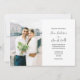Einfache Einladung zum klassischen Foto. Front: Foto und Text nebeneinander mit Skript und schlichtem Text. Zurück ist grau. Ersetzen Sie das vorhandene Foto durch Ihr eigenes. Klicken Sie zum Bearbeiten des Layouts auf Anpassen, Bearbeiten mit dem Entwurfstool und anschließend auf Text bearbeiten. Verwenden Sie Cntl, um mehrere Bereiche gleichzeitig auszuwählen und zu verschieben.