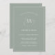 Einfache Sage Green Monogram Einladung Hochzeit. Stilvoll beeindrucken Sie Ihre Hochzeitsgäste mit dieser trendigen, grün-grünen Hochzeitseinladung, die ein schönes weißes Drehbuch mit den Initialen der Braut und des Bräutigams auf einem schluchgrünen Hintergrund enthält. Diese Einladung hat ein atemberaubendes moosgrünes Design, mit modernen und minimalistischen Farbtönen, perfekt für Ihre einfache, trendige, minimalistische Hochzeit. Das minimale und moderne Layout lenkt die Aufmerksamkeit auf das Initial-Skript, im Gegensatz zum hellgrünen Hintergrund. Diese Einladung Set den Ton für eine wunderschöne Hochzeitslandschaft, umgeben von neutralen oder schlauen grünen Blumen und passender pastellgrün Hochzeitsdekoration. Eine perfekte Ergänzung zu jeder unterschwelligen, modernen Feier. Das Sonntagkollektiv © von Rachel Hannah Gee