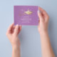 Modern in Budget Einfache Minimalistisch Graduation Party Einladungen mit Graduate Cap und stilvollem Kalligraphieskript in goldmetallic Imitat Folie. Der Lila Hintergrund von Lavender ist unbezahlbar, aber stilvoll und elegant, in jeder Farbe anpassbar.