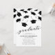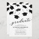 Minimalistische Einladungen zur Graduierungspartei mit fallenden schwarzen Mörtelkappen und einer modernen Textvorlage, die leicht zu personalisieren ist.