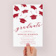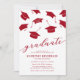 Minimalistische Einladungen zur Graduierungspartei mit sinkenden roten Mortarboard-Kaps und einer modernen Textvorlage, die leicht zu personalisieren ist.