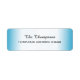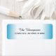 Rücksendeadressen-Aufkleber in Blau und Weiß.