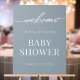 Entwerfen Sie Ihr eigenes personalisiertes Babydusche-Begrüßungsschild mit minimalistisch elegantem Typografie-Design. Fügen Sie Ihre benutzerdefinierten Daten wie Name und Datum hinzu.