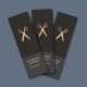 Elegante Visitenkartenvorlage mit dunkelgrauem Hintergrund und Imitaten goldenen Schere. Modernes und elegantes Design. Ideal für Friseur, Friseur, Friseur.