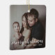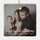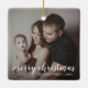 Fügen Sie Ihrem Baum eine Erinnerung mit diesem modernen Sake-Keramik-Ornament mit einem einfachen Design mit dem Gruß, "fröhlichen Weihnachten" in der Schriftzeichen Typografie mit Ihrem Familiennamen und Jahr über Ihrem Lieblings-Foto. Fügen Sie auf beiden Seiten das gleiche Foto oder auf beiden Seiten ein anderes. Dieses Ornament ist auch ein großartiges Geschenk für Freunde und Familie.