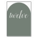 Elegante Moosgrün abgerundete Top-Tischnummer Karten mit schicken Schriftzeichen in jeder Farbe sind für Ihre Veranstaltungstabellen schön. **HINWEIS: Erstellen und fügen Sie jede Tischnummer, die Sie benötigen, individuell in Ihren Warenkorb. Ändern Sie den Hintergrund und den Text in eine beliebige Farbe, um das entsprechende Thema zu erhalten.