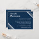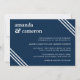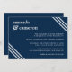 Eine einfache und elegante Hochzeitseinladung mit minimalistischer Anziehungskraft in marineblau mit weißen dreifach ausgekleideten Ecken und weißem Text. Die Namen der Braut und des Bräutigams sind auf dem oberen links der Einladung mit den Einzelheiten der Hochzeit in einem modernen, rechtsbegründeten Rahmen sichtbar. Diese geschmackvolle Einladung ist eine wunderbare Wahl für Hochzeiten zu jeder Jahreszeit oder zu jeder Tageszeit. Das luxuriöse Farbschema Set den Ton für eine schöne Hochzeitsfeier. Sie können die Farbe dieser Einladung ändern, um Ihre Hochzeitsfarbe Schema, indem Sie "klicken, um weiter anzupassen" am unteren Rand der Textvorlage und wählen Sie eine andere Hintergrundfarbe.