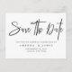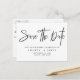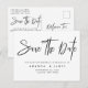 Elegante, einfache Schwarz-Weiß-Verlängerung Save the Date Postkarte. Das Design von ''Save the Date'' in modernem Kalligrafieschrift in tiefschwarzer Farbe auf weißem Hintergrund. Fügen Sie Ihre Nachricht und weitere Details auf der Rückseite hinzu. Alle Rechte vorbehalten ©MSJ_DESIGNS