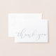 Ein einfaches, minimalistisches Design mit den Worten "danke" in der Handschrift Drehbuch Schriftart über die untere Vorderseite in echter Silberfolie. Ein vielseitiges Design, das Sie für jeden Anlass verwenden können, wenn Sie gewollt, um jemandem ganz Besonderes zu danken! Ideal für Hochzeiten. Auch in Echtgoldfolie-Skript erhältlich.