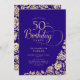 Einfache, elegante 50. Geburtstagsfeier in lila und gold. Klassisches Design mit Rose, Imitaten Goldfolie und Typografie Script Schriftart. Die trendige Einladungskarte eignet sich perfekt für eine stilvolle Damenfeier. Personalisieren Sie Ihre persönlichen Daten. Kann für jedes Alter angepasst werden. Gedruckte Zazzle-Einladungen oder Sofortdownload digitaler Druckvorlage.