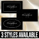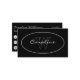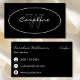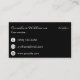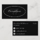 Eine Visitenkarte in einem einfachen und eleganten Design in weiß auf schwarz mit einem Namen und Monogramm in einem Oval auf der Vorderseite und Kontaktinformationen auf der Rückseite.