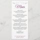 Dieses wunderschöne, lila oder magentafarbene, graue und weiße Menü wird Ihrem Hochzeitsempfang einen gewissen Stil verleihen. Das schlichte Design von Cassis und Graubuchstaben auf weißem Hintergrund mit einer dekorativen silbernen Imitat-Folie florale filigrane.