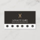 Elegantes Loyalitätskartendesign mit goldenem Scherenmuster und dunkelgrauem/weißem Hintergrund in Imitaten. Einfaches und elegantes Design, perfekt für Schönheitssalon, Friseur, Friseur.