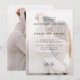 Diese einfache, minimalistische, moderne Hochzeitseinladung bietet klassische schwarze Serif-Schriftart-Überlagerungen auf einem rechteckigen, weißen Bildschirm über Ihrem bevorzugten Hintergrund-Foto, mit ausgewählten Wörtern und Phrasen in stilvoller Handschrift Kalligraphie. Das gleiche Foto wird auf der Rückseite der Einladung ohne den weißen Bildschirm angezeigt.
